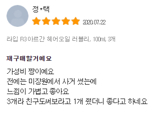 오일 특유의 무거운 사용감이 아닌 아른간 오일 가벼운 사용감으로