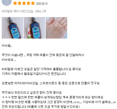 아르간 오일 제품은 보통 헤어에 바르는 제품이 유명합니다.
